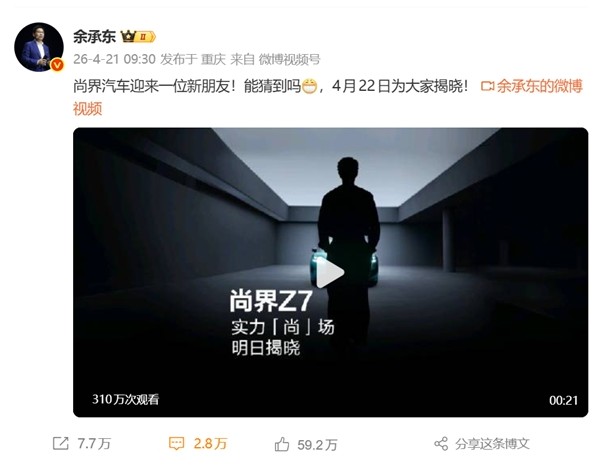 华为常务董事、终端BG董事长余承东发布视频,配文:尚界汽车迎来一位新朋友!能猜到吗,4月22日为大家揭晓”。 视频中模糊的人物剪影,预热内容发布时间卡点肖战生日数字1005”,线下投放的亚洲第一大屏”广告也同步释出侧影物料,进一步坐实了外界的猜想。 视频发布后,粉丝纷纷在评论区表示期待肖战”。 两车设计语言高度一致,均采用低趴流线造型与低风阻设计,配备类似跑车风格的前脸及双LED大灯,前包围两侧设置导流槽。车尾均采用贯穿式尾灯,营造宽体视觉效果,猎装版Z7T尾部造型更为饱满。 动力方面,两款车型提供单电机与双电机版本。 单电机版最大功率264千瓦,最高时速220km/h;双电机版额外搭载一台170千瓦前电机,最高时速分别为239km/h与242km/h。 全系搭载华为巨鲸电池平台,标准版配备81度磷酸铁锂电池,Max、Ultra版标配100度三元锂电池,其中后驱Max版CLTC续航可达905km,支持800V超充,5分钟快充可补能200km以上。 |