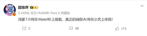 华为Mate90系列将率先搭载全新的鸿蒙7.0系统。此次系统更新的核心亮点在于端侧AI的深度集成,这一进化将主要体现在智能助理小艺身上。 按照惯例,鸿蒙7.0预计会在年中的华为开发者大会上正式亮相,随后由下半年发布的年度旗舰Mate90系列出厂预装。 目前鸿蒙最新的系统版本号为6.1,该版本首创了小艺伴随式AI,并内置了强大的小艺智慧大脑,这一领先的AI体验已由Pura90系列和PuraXMax率先搭载。 据了解,小艺伴随式AI具备类似人脑的记忆、反思与进化能力。它能够根据用户的使用习惯进行自我迭代,从而实现智慧伴读、智慧出行等多项极具实用价值的功能。 在智慧伴读功能中,小艺可以在阅读前为用户提供精简向导,精准提炼长文的核心逻辑脉络。这极大地节省了用户筛选信息的时间,让深度阅读变得更加高效。 在实际阅读过程中,小艺支持边读边提问、实时划重点等交互。它还集成了表格与文字提取、图片翻译以及文档扫描等实用工具,为办公和学习场景提供了全方位的支持。 对于未读完的内容,用户可以通过一键稍后阅读功能实现断点续读。在浏览科技与互联网热点时,系统甚至能推荐知乎深度话题智能体,引导用户与网友展开更深层次的讨论。 展望未来的鸿蒙7.0,其端侧AI能力将会迎来更加全面的升级。作为华为影像与智慧体验的巅峰之作,Mate90系列与鸿蒙7.0的软硬结合无疑非常值得期待。 |