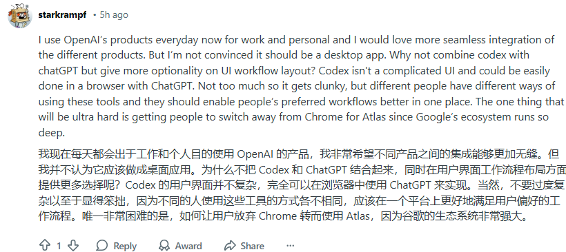 OpenAI的一位发言人表示,应用部门CEO Fidji Simo将负责监督该计划,并与OpenAI总裁Greg Brockman一起进行产品和组织变革。 Fidji Simo随后在X上证实了这一消息:“公司会经历探索阶段和重新聚焦阶段。当新的投资开始奏效、就像我们在Codex等领域取得成效时,加倍投入并避免分心是至关重要的。” |翻译一下:OpenAI不想再让你在各种网页标签页和客户端之间跳来跳去了。它要接管你的整台电脑。 为什么是现在?OpenAI的“内部红色警报” 很多人会问:OpenAI为什么要这么急着整合? 答案是:被逼急了。 过去半年,OpenAI虽然声势依旧浩大,但在产品上的优势日渐面临竞争压力。 一方面,谷歌的Gemini 2.5之后,ChatGPT访问量占比面临着冲击;另一方面,劲敌Anthropic的Claude Code正在疯狂收割开发者流量,而GitHub Copilot依然把持着开发者的入口;而搜索方面,各大AI搜索产品(如Perplexity)显然也不会坐等Atlas的地盘壮大。 其中尤其是Anthropic步步紧逼的竞争态势。如今,Claude Code和Claude Cowork已经在企业级编程和协同办公领域拿下了极佳的口碑。 如果OpenAI不能迅速把ChatGPT的流量转化为高粘性的办公/编程生产力,就会面临“流量空心化”的危险。 对于Sam Altman来说,现在的OpenAI就像是一个拥有无数顶级零件却没组装好的赛车。 显然,这样的“散装”模式对于这样一个强敌环伺的时间点,已经不再合适,反而会成为一种内耗,也意味着用户体验的分裂。 据内部人士透露,OpenAI已经拉响了内部的“红色警报”(Code Red),由总裁Greg Brockman亲自出马并协助Simo完成这一变革。 目标只有一个:在桌面端建立绝对的防御工事,把AI从一个“好用的工具”变成一个“离不开的系统”。 三合一:这台“缝合怪”会有多恐怖? 据悉,这款超级应用的重点在于创建“Agentic AI”功能,使其能够代表用户自主执行诸如编码或分析数据等任务。(没错,就是为了回击Anthropic!) 要理解这个“超级应用”的威力,我们得看看这三个组件合体后会产生什么样的化学反应: ChatGPT(大脑):负责逻辑推理和任务调度。 Codex(双手):负责底层代码的执行与环境调用。 Atlas(眼睛):作为AI浏览器,它提供了实时联网和操作网页的能力。 想象一下这个场景:你不再需要打开浏览器查资料,再复制到ChatGPT总结,最后写成代码。你只需要在“超级应用”里说一句话:“帮我监控某电商网站的波动,如果降价了,自动写个脚本同步到我的表格里。” Atlas负责看,ChatGPT负责想,Codex负责写。这一套丝滑的连招,标志着OpenAI正式从“对话框”跨向了“Agent(智能体)”时代。 另外,OpenAI此举还有一个不小的野心:消灭中间商! 这款Super App上线后,用户将不再需要Chrome提供网页入口;同样也不再需要VS Code提供编程环境;甚至,它不再需要用户频繁点击鼠标。 这种“桌面级Agent”的出现,无疑将直接冲击现有的软件交互逻辑。 如果AI能直接在桌面端处理一切,我们还需要点击那些花里胡哨的Icon吗? ChatGPT.com还会存在吗? 很多读者担心,一旦Super App上线,那个熟悉的网页版chatgpt.com会不会成为历史?答案是:它会留着,但很明显,它的重要性将会打折扣。 据爆料,Super App很可能成为OpenAI新一轮商业分层的核心入口。随着agentic AI带来的算力成本飙升,更高阶的自动执行能力,大概率会被打包进更高等级的订阅体系中。相比之下,免费用户所能使用的能力边界,可能会被进一步收紧。 此外,据网友猜测,在Super App里,ChatGPT的视觉存在感也会变弱,或许会化身成一个呼之即来的侧边栏。当你打开它时,它可能已经静默读取了你Atlas浏览器里的20个标签页,并在Codex环境下为你跑好了数据脚本。 问题是:OpenAI能完成惊险一跳吗? 回看PC、互联网,一个企业在面临增长瓶颈或强大竞争时,必须完成从“单一工具”到“全能平台”或“底层生态”的纵身一跃。 但真正成功做到“惊险一跳”的,都成了苹果或微软这样的大厂;跳不过去,可能就沦为大厂生态里的一个高级插件。 但问题在于,阻力和难度都是可想而知的。 首先,这样一款超级App,本身就会引起巨头们的高度警惕。微软虽然是盟友,但Windows本身就在做Copilot。OpenAI想在桌面端做一个“超级入口”,本质上是在抢微软和谷歌的饭碗。 其次,算力与成本的问题。Agent级别的任务处理极其消耗Token。如何让Super App既聪明又不至于让公司亏死,是商业上的大坎。 最重要的是,用户习惯真的已经够Ready了吗?人们真的习惯让一个AI全面接管自己的桌面吗?隐私和安全的屏障比技术更难逾越。 X上一位网友评论到,只有人们不再从碎片中寻找价值时,Super App才会奏效。本身ChatGPT和Codex用户就不是一波人,思维方式截然不同,除非默认设置经过精心设计,否则这款Super App将会面临吃力不讨好的“体验下降”的局面。 |